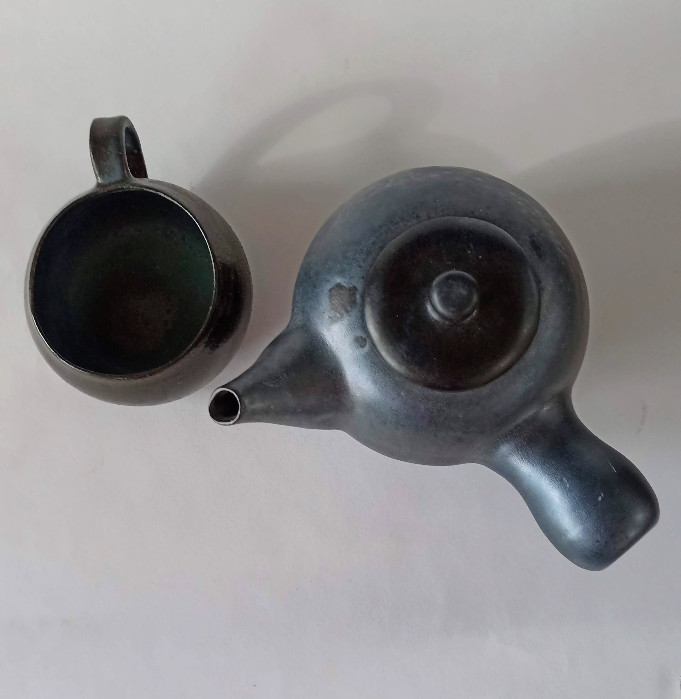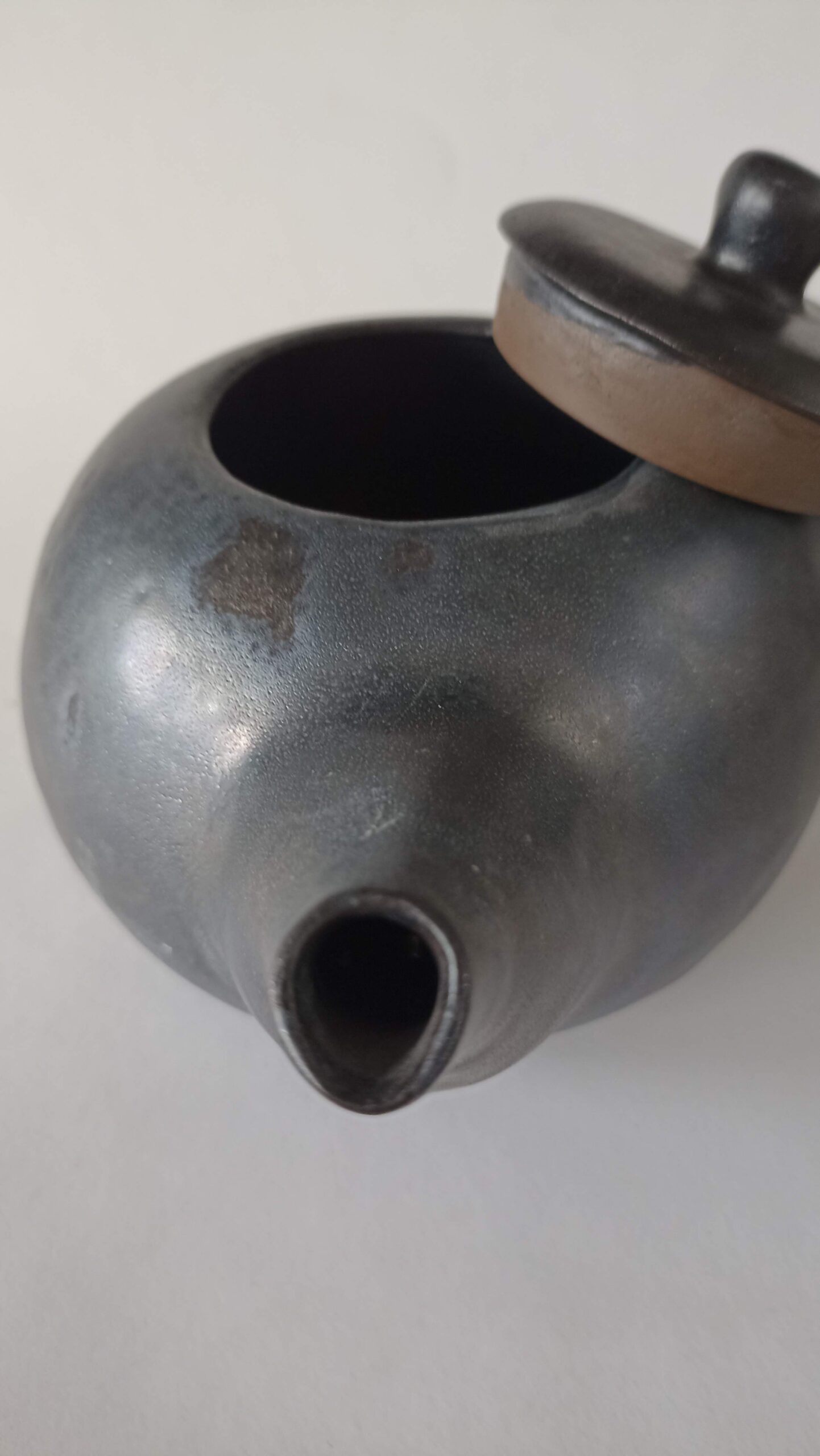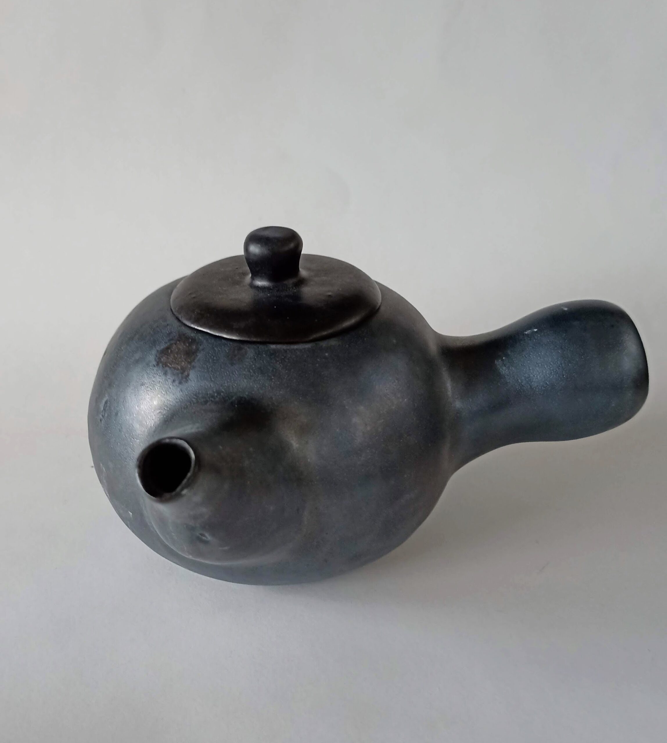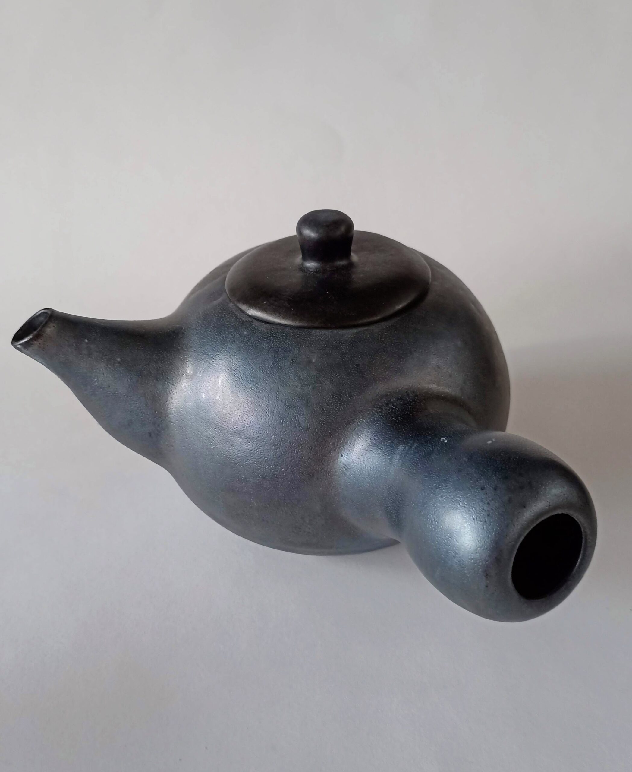 Čajnik narejen ročno, črna metal glazura na črni glini, drži 500ml