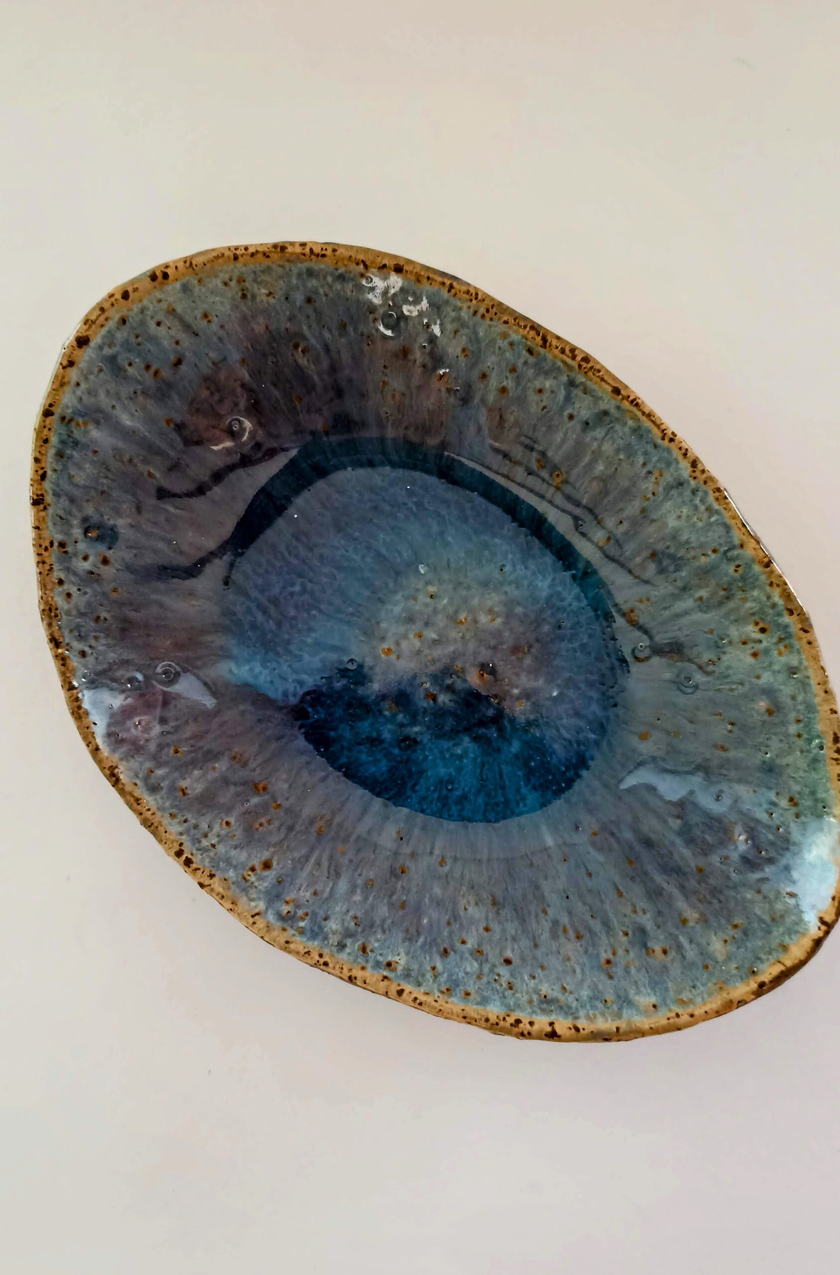 Krožnik organske oblike, kamenina dim. 17x12cm