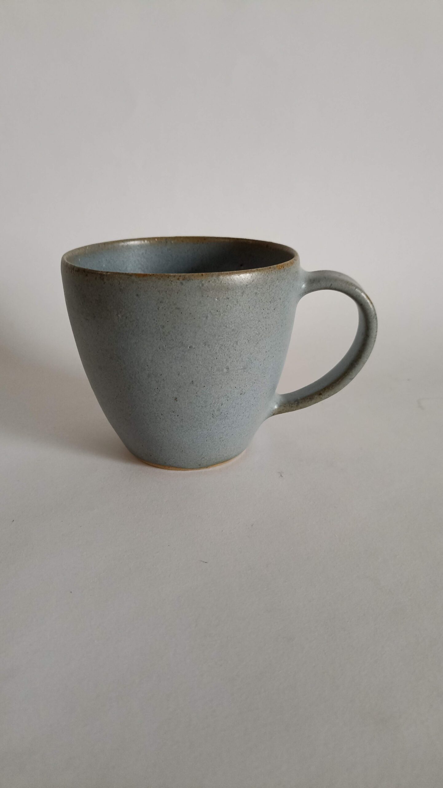 Skodelica za čaj ali kavo, modra mat glazura na rumeni pikasti glini, drži 250 ml