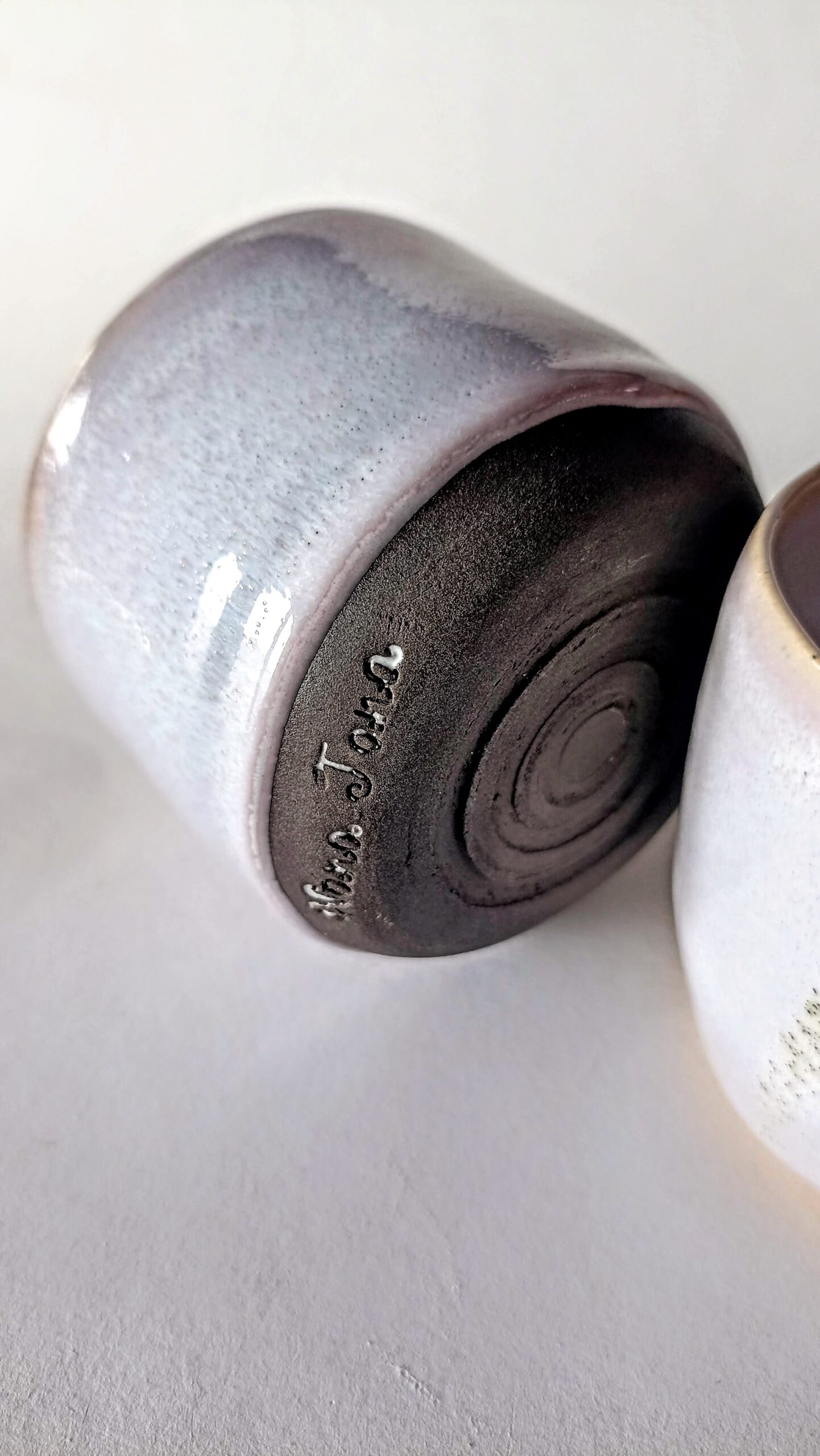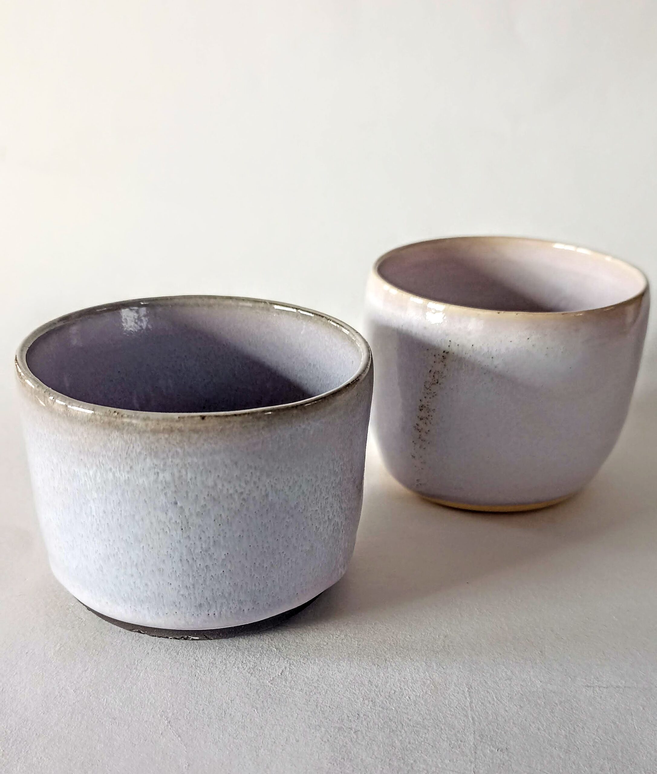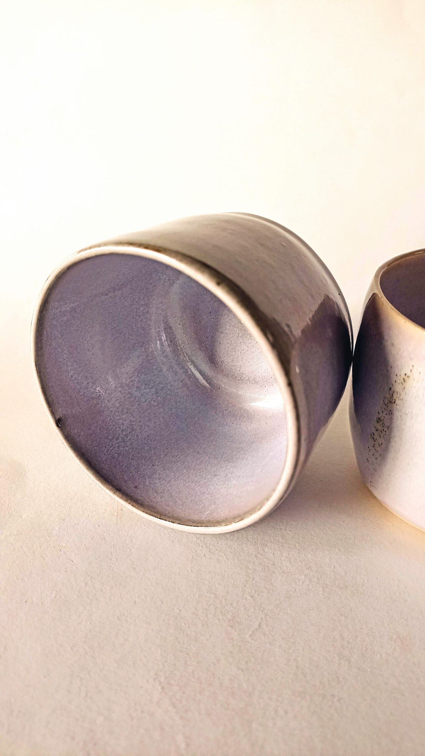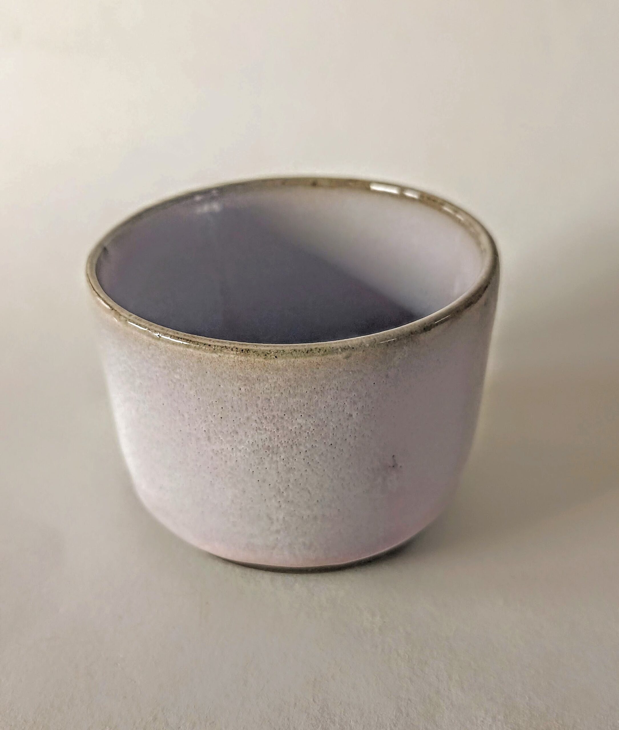 Skodelica za kavo brez ročaja, nežno lila glazura na črni glini, drži 150ml